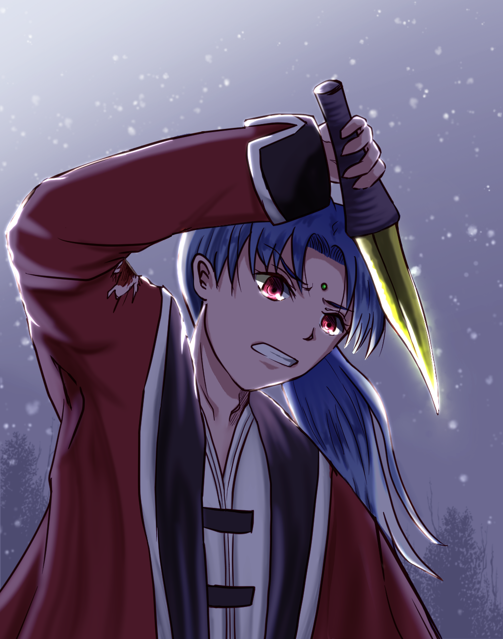 ラフを描くときに友情をテーマにしたツーショットと悩んだけど、刀を突き立てる瞬間の決意と本心から溢れる想いの葛藤をどうしても描きたくてこっちのテーマを採用。