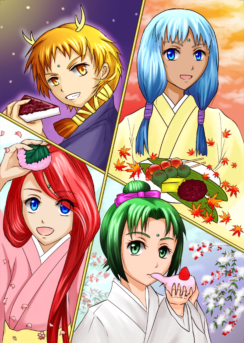 それぞれの季節のモチーフとして、和菓子に加えて、R版リロード画面の桜・蛍・紅葉・雪を取り入れています。気づいた人いるかな…?
