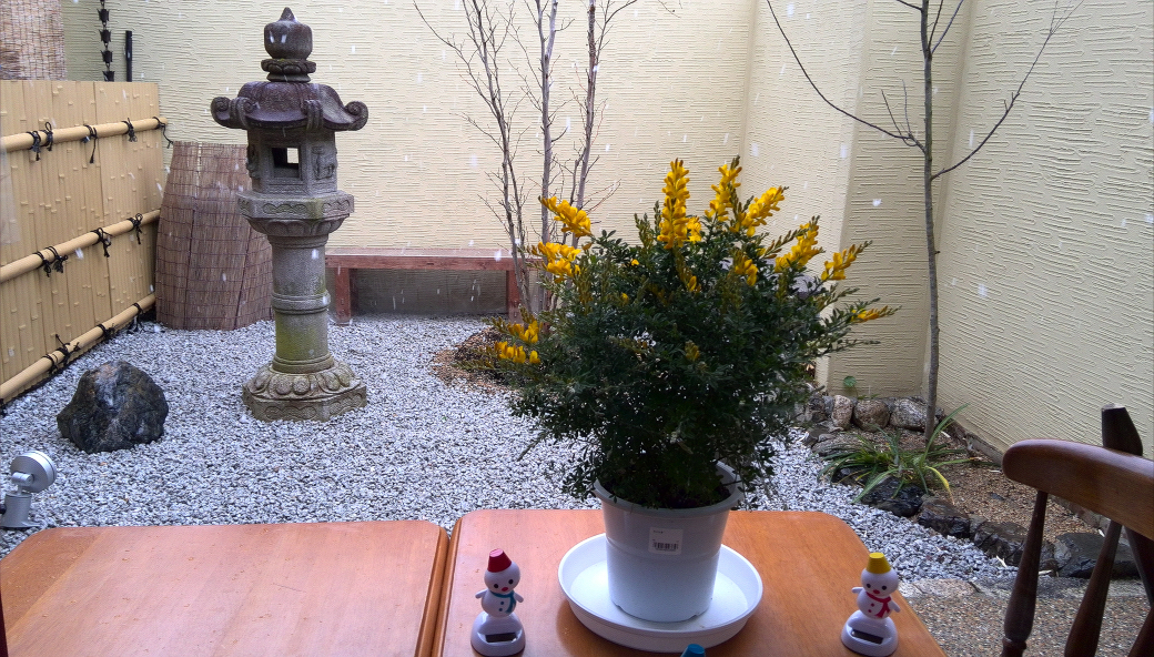お店の人曰く、3月の京都はよく雪が降るそうです。