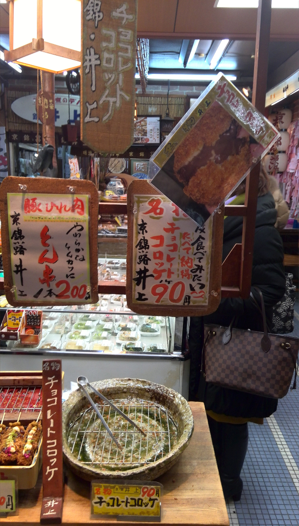 錦市場で、チョコレートコロッケなるものを並んでまでして買うww