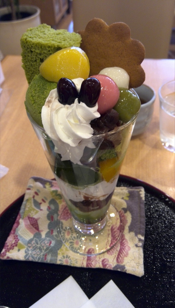 京都のパフェって、黒糖が主役でも抹茶アイスの抹茶が濃ゆいし、抹茶が主役でもバニラアイスにしっかりバニラビーンズを使ってるし、生クリームも美味しいし。