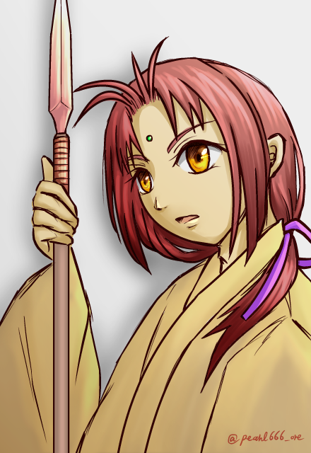無属性武器じゃ火力不足で左由梨に負け続きだった灯梧が、火属性の槍を手にして覚醒、ようやく強くなった頃。元服すぐくらいの年齢。