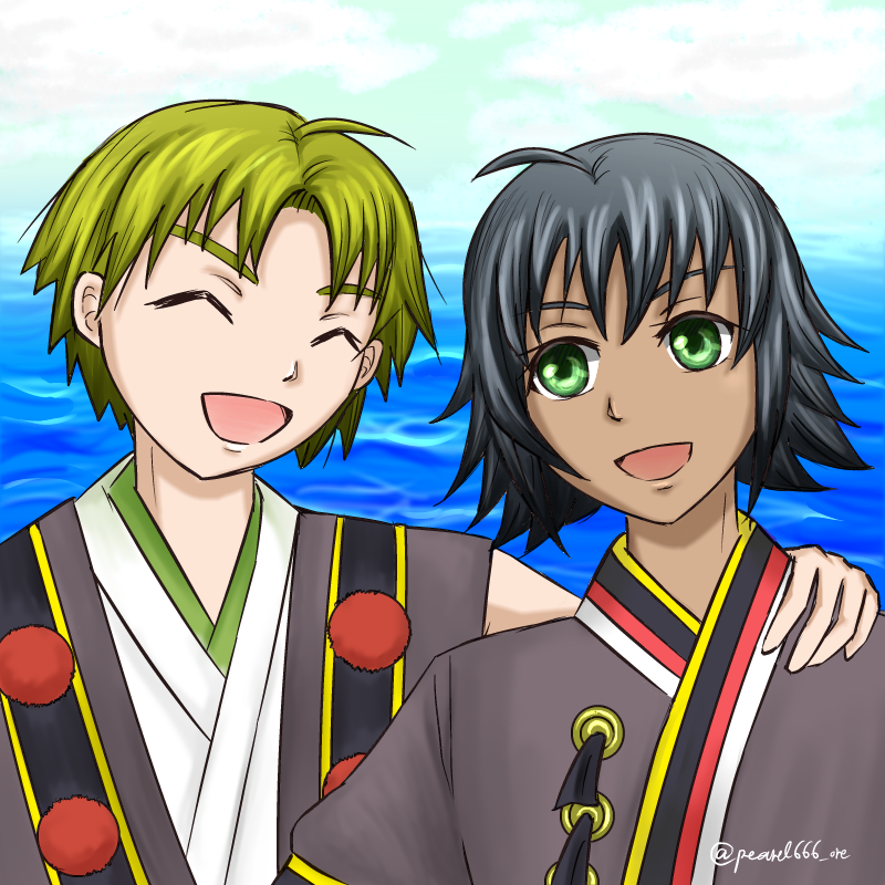 最後の1枚は、月舘一族の「八ツ髪討伐隊」でお題の【髪】をクリアするつもりでしたが、描き終えてから気付いた「アホ毛=髪」。