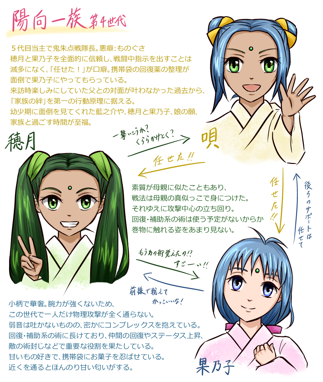 月舘家の灯梧と左由梨の描き方。