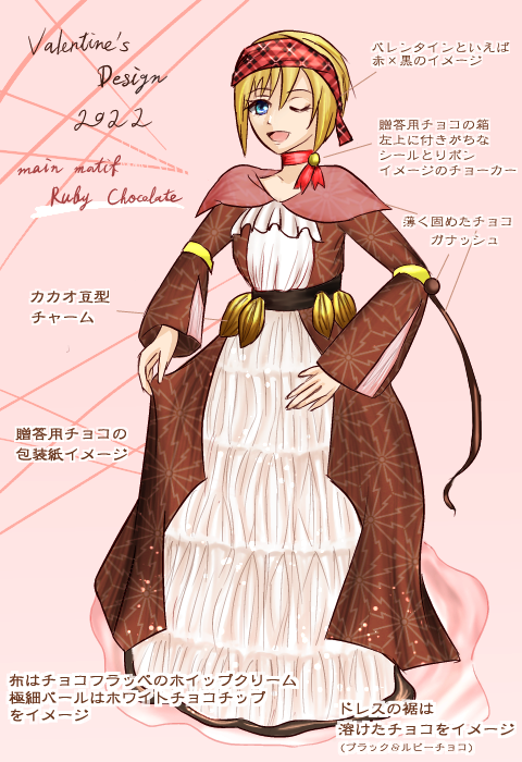 昨年ルビーチョコをもらったのですが、苺は入ってないのにピンク色で苺みたいな味がする!?と、不思議で印象的だったので今回のメインモチーフに据えてみました。