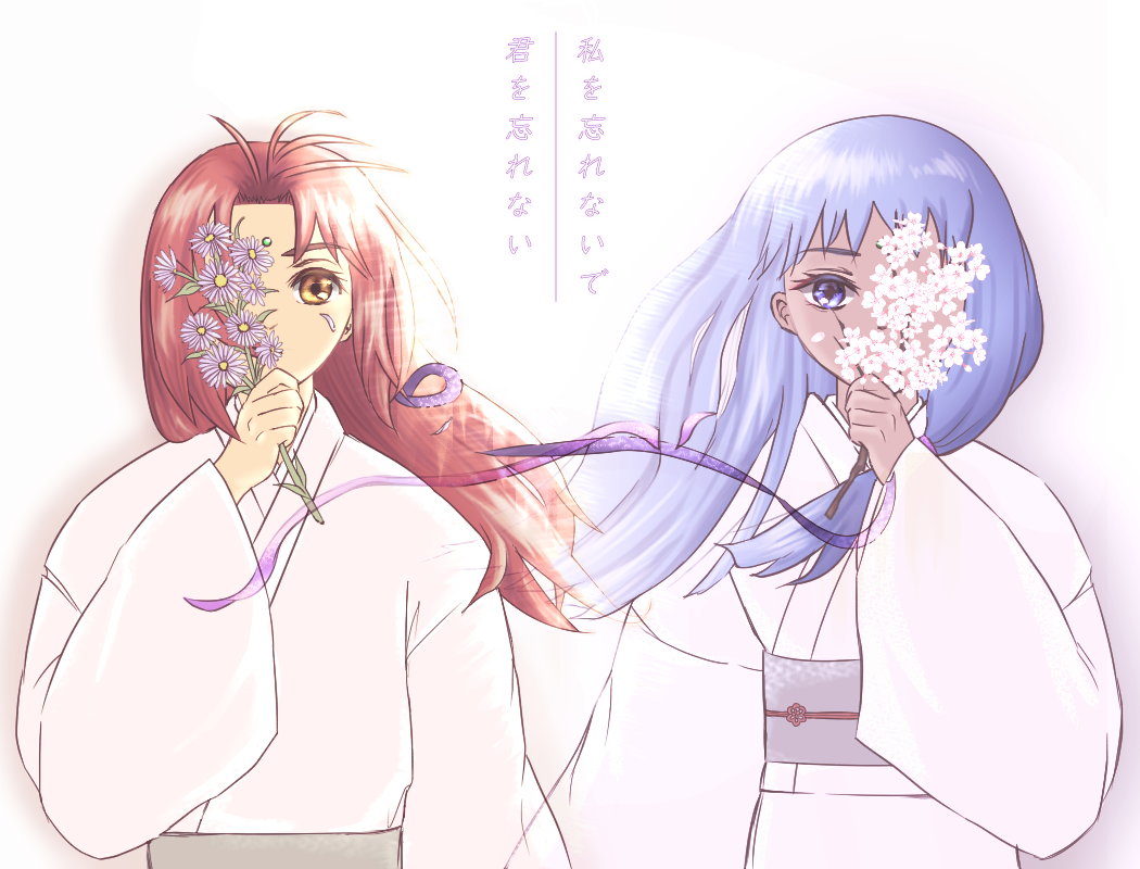 フランスの桜の花言葉が「私を忘れないで」ということで 、灯梧に宛てる左由梨の言葉として以前イラストを描いていました。